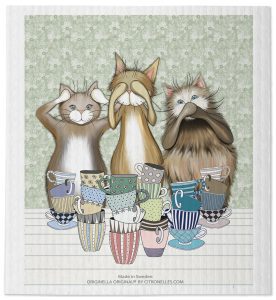 Fin disktrasa med söta katter i serien FIKATT från Originella Original. Serien finns även med de söta katterna på som frukostbricka i grönt. Disktrasan är tillverkad i Sverige och miljömärkt (FSC-certifierad). 18x20cm.